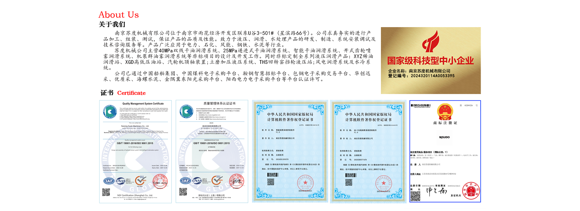 南京蘇度機械有限公司位于南京市雨花經濟開發區聯東U谷3-502# (星濱路66號)。得益于南京以及長三角地區的潤滑產業集群優勢資源,公司求真務實的進行產品加工、組裝、測試,保證產品的品質及性能。致力于液壓、潤滑、水處理產品的研發、制造、系統安裝調試及技術咨詢服務等。產品廣泛應用于電力、石化、風能、鋼鐵、水泥等行業,長期與國內大型的重機企業及設計院合作,潤滑系統隨主機設備出口至東南亞、...